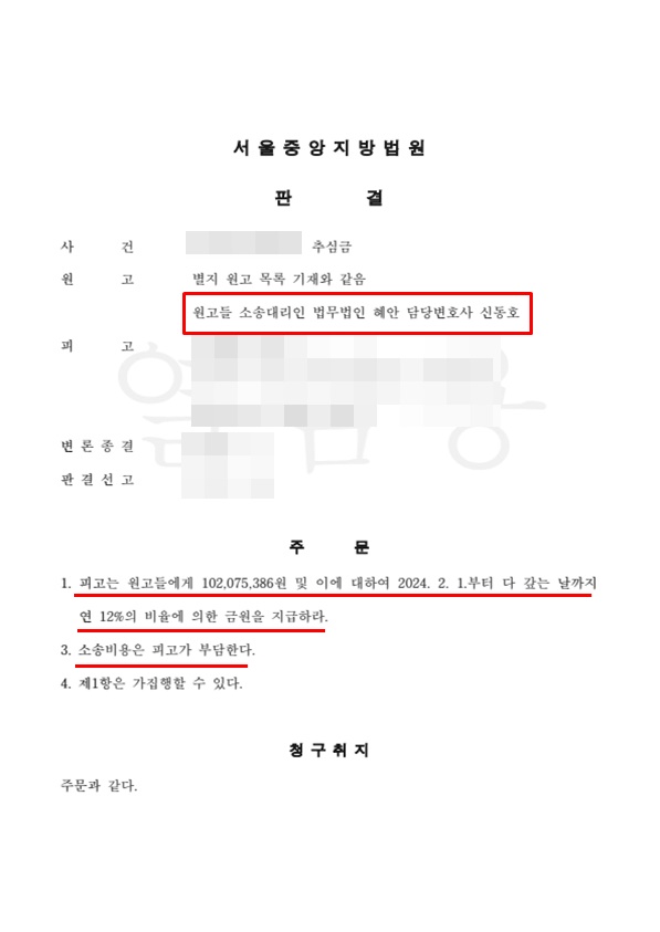 이에 원고들은 채권압류 및 추심명령을 신청하여 결정을 받아 제3채무자들에게 송달되었는데요. 이에 원고들은 피고에게 추심명령에 따른 금액을 지급할 것을 요구하였음에도 응하지 않았습니다.